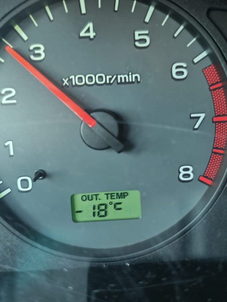 Day 3 and freezing cold! At 7 o’clock in the morning, it was -24 degrees. But last year, we installed an engine heater in the Subaru.This keeps the coolant at a temperature of around 30 degrees. This makes starting the car much easier. So the car started without any problems, and the run start was also without any problems. First on the road.